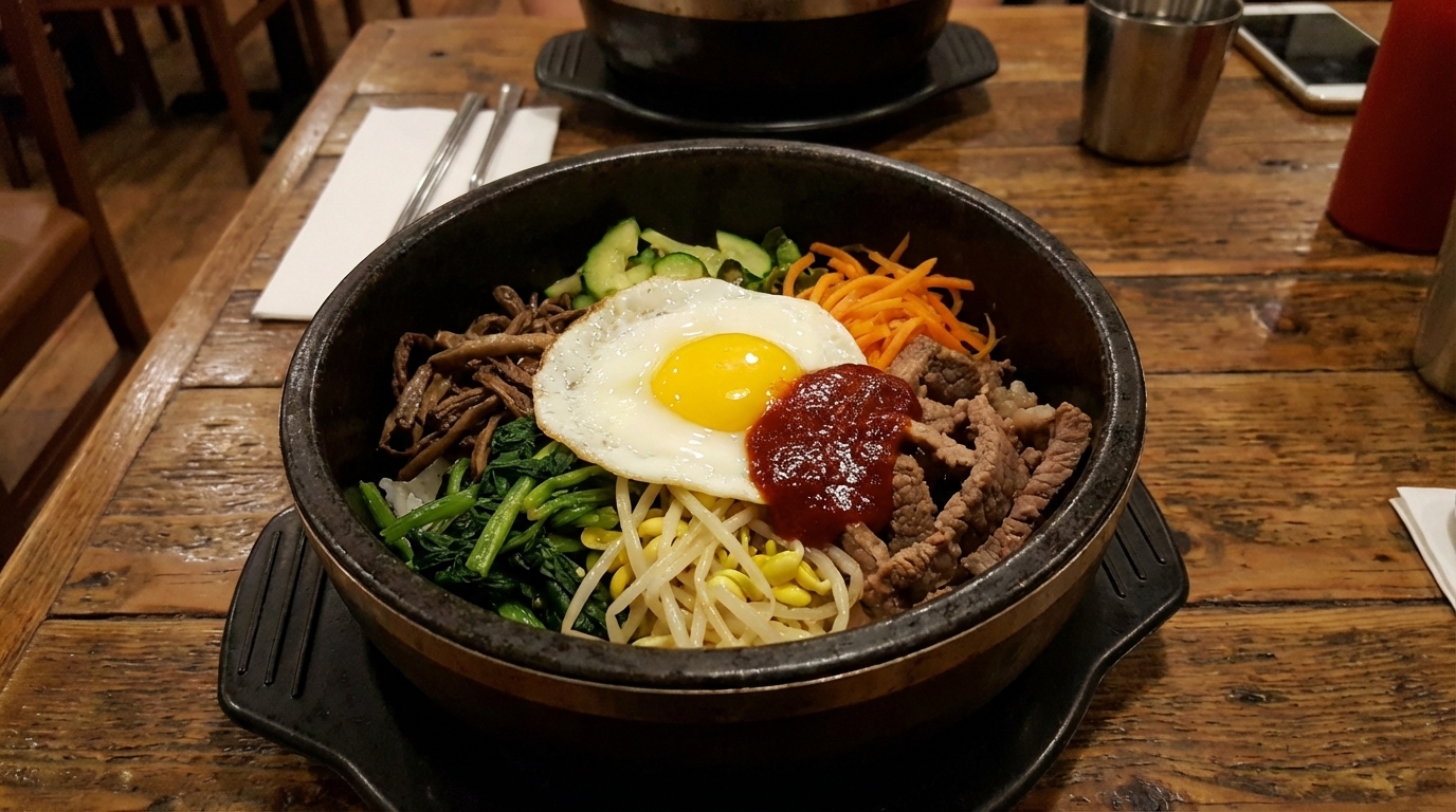 A unique dessert featuring cold vanilla ice cream served in a hot stone pot (dolsot). Crispy cinnamon crumble and sweet caramel sauce create a harmonious blend.